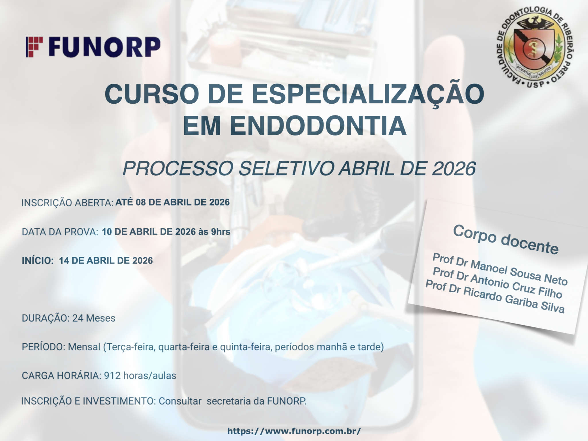 CURSO DE ESPECIALIZAÇÃO EM ENDODONTIA - ABRIL DE 2026 - INSCRIÇÕES ABERTAS!!
